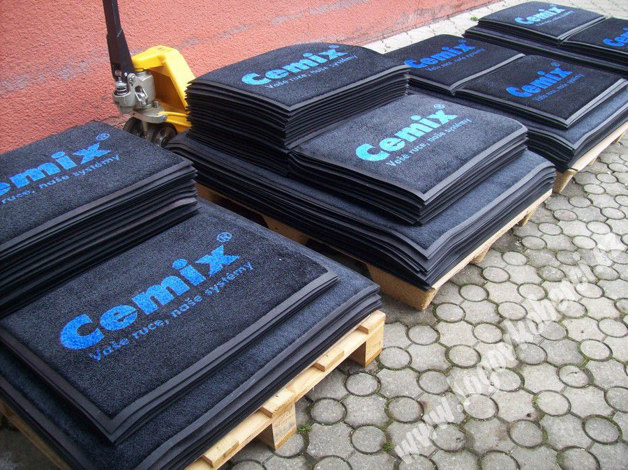 Rohože vyrábíme ze 100% polyamidu s protiskluzovým gumovým podkladem a lemem. Nabízíme technologie chromojet, protisk a intarzie.